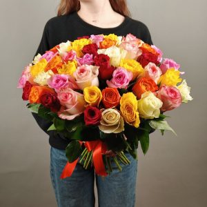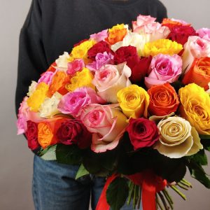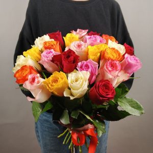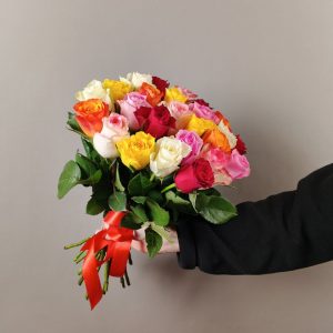• Букет из 35 роз микс 45 см в оформлении с фисташкой
