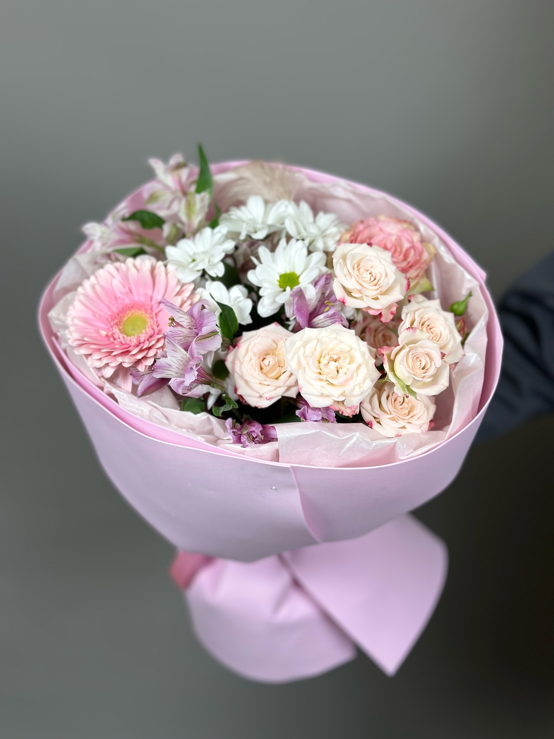 Букет с кустовой розой и хризантемой “Куколка”